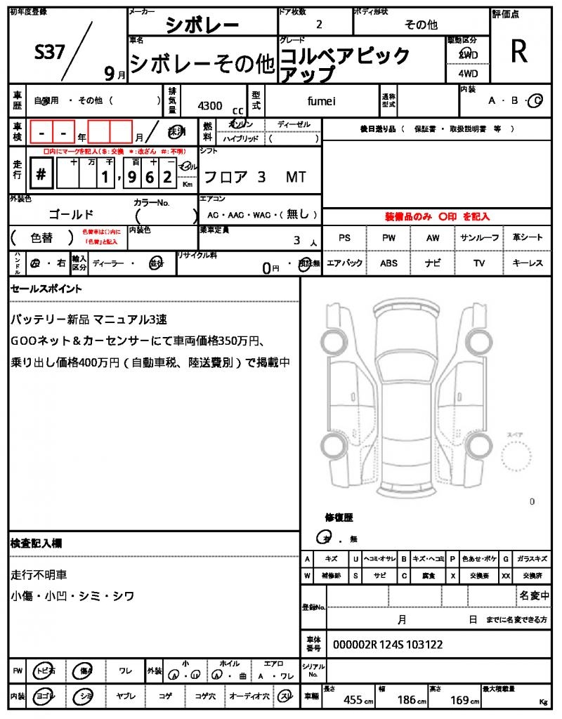 CHEVROLETCHEVROLET OTHER19624300 cc