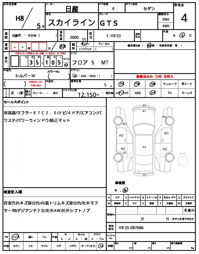 | NISSAN | SKYLINE | 1996 | 2000 cc | ||||||||||||||||