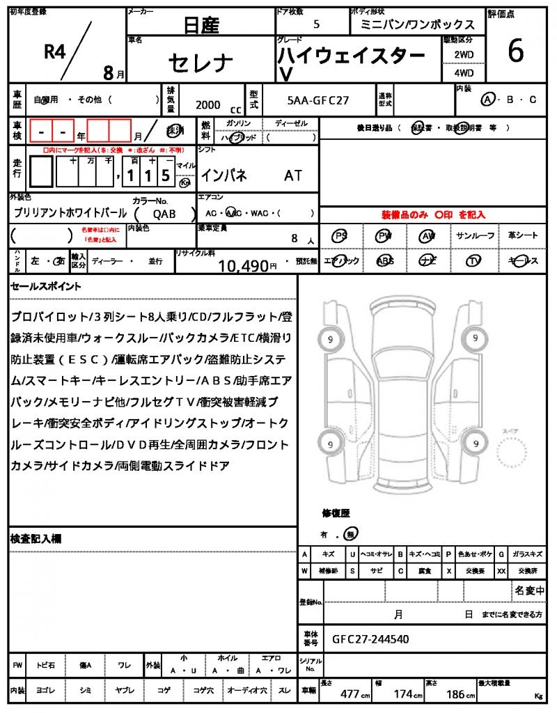 | NISSAN | SERENA | 2022 | 2000 cc | ||||||||||||||||