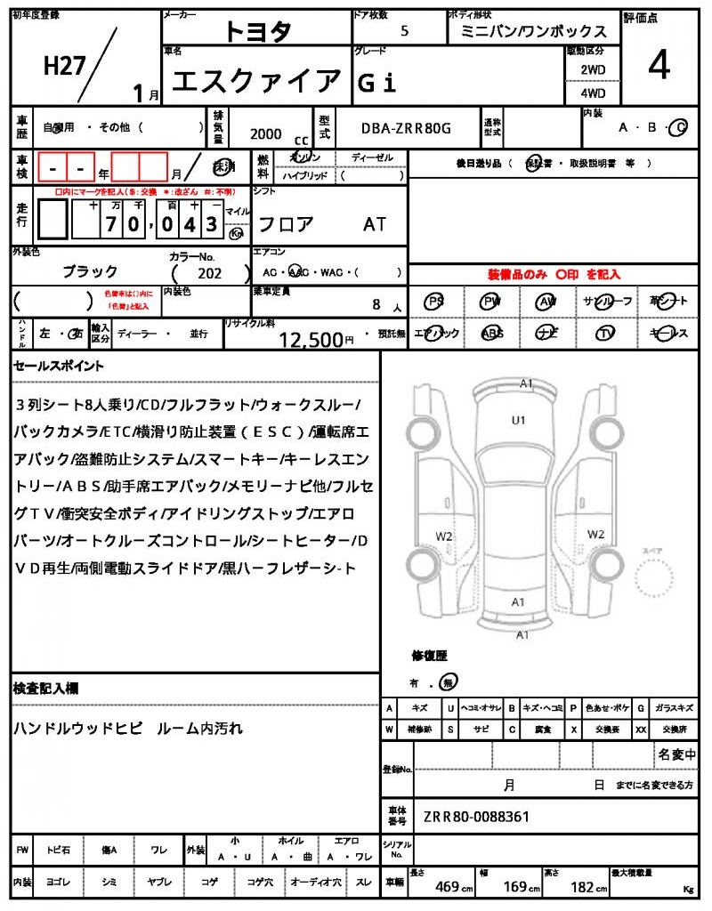 HomeShopTOYOTAESQUIRERef:AUX-13969391 TOYOTA ESQUIRE 2015