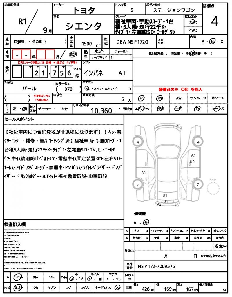 TOYOTA | SIENTA | 2019 | 1500 cc | ||||||||||||||||