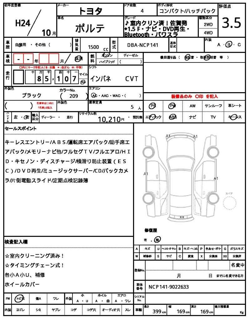 | TOYOTA | PORTE | 2012 | 1500 cc | ||||||||||||||||