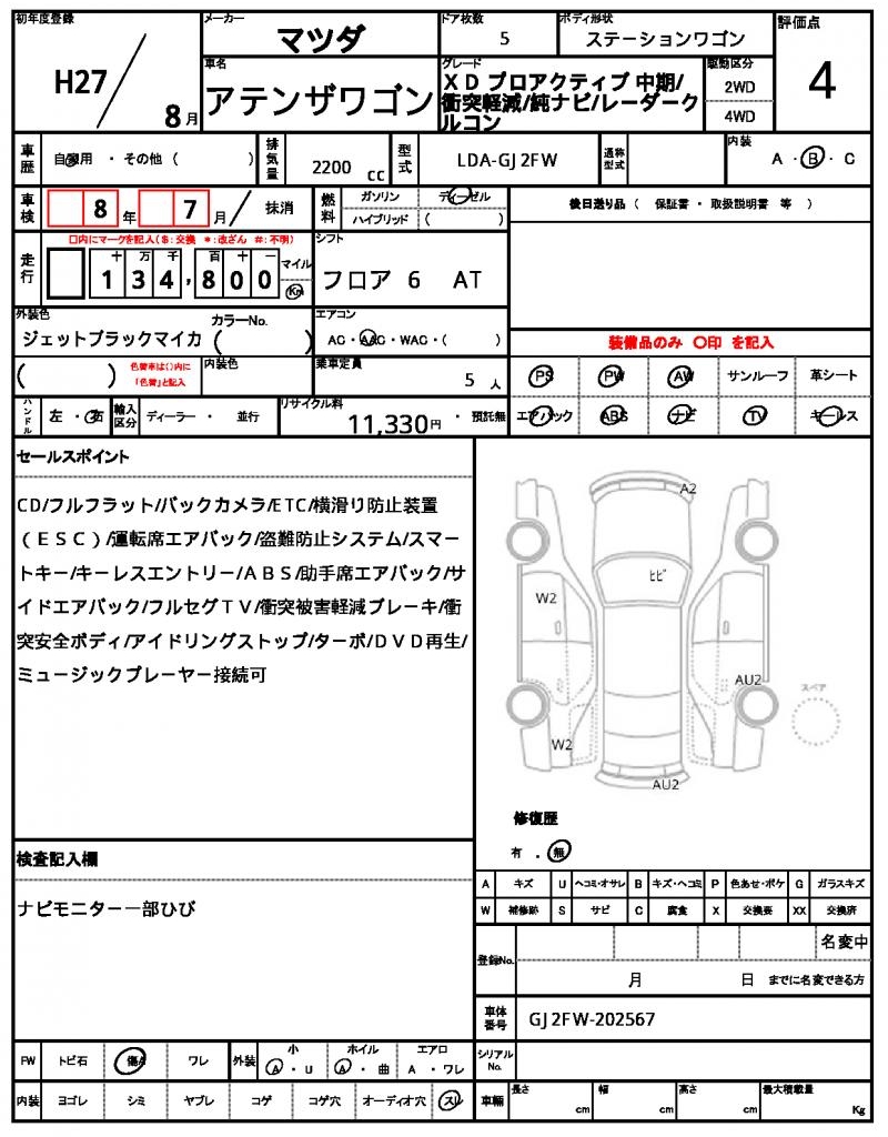 MAZDA | ATENZA WAGON | 2015 | 2200 cc | ||||||||||||||||
