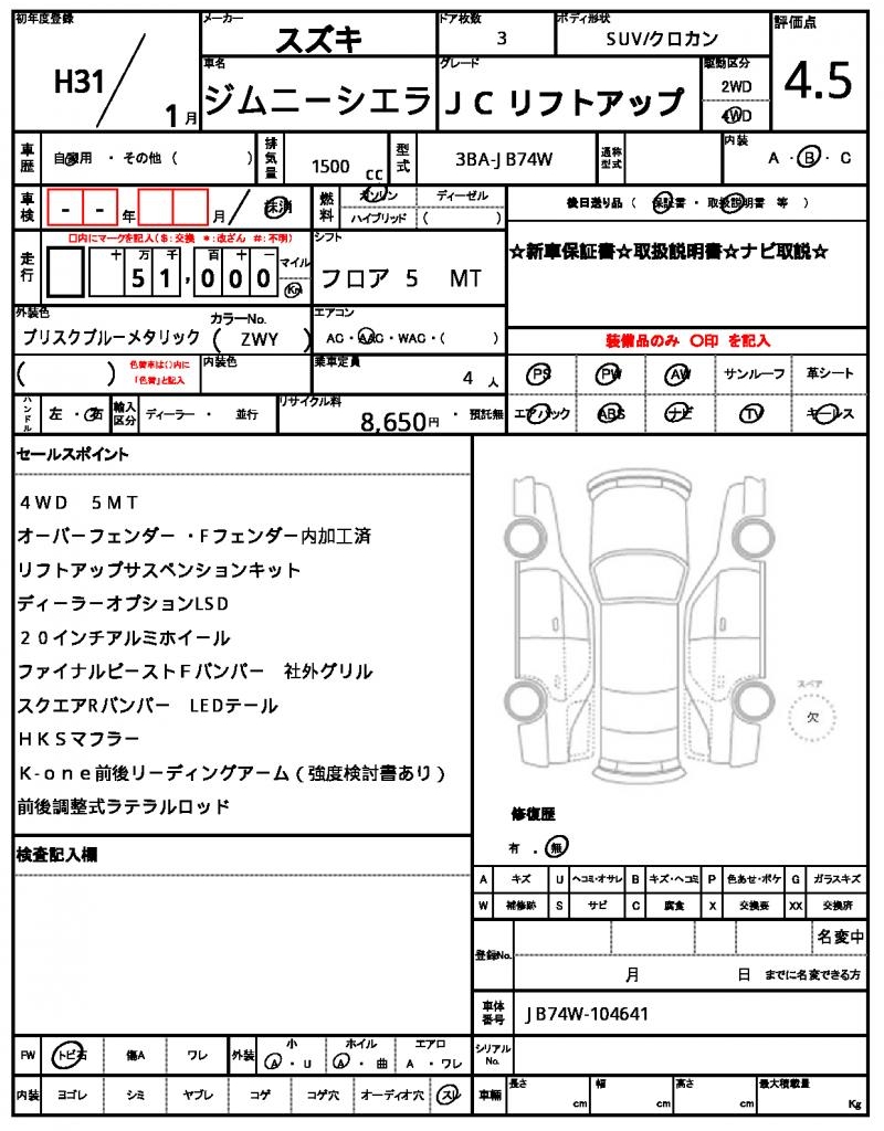 SUZUKI | JIMNY SIERRA | 2019 | 1500 cc | ||||||||||||||||