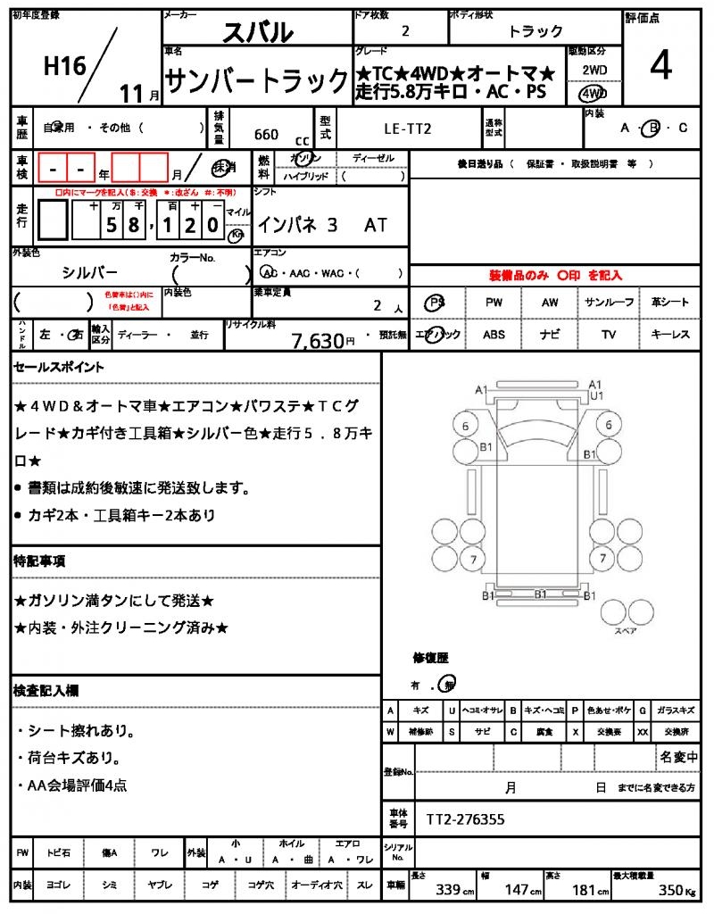 | SUBARU | SAMBAR TRUCK | 2004 | 660 cc | ||||||||||||||||