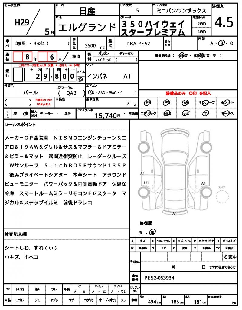 NISSAN | ELGRAND | 2017 | 3500 cc | ||||||||||||||||