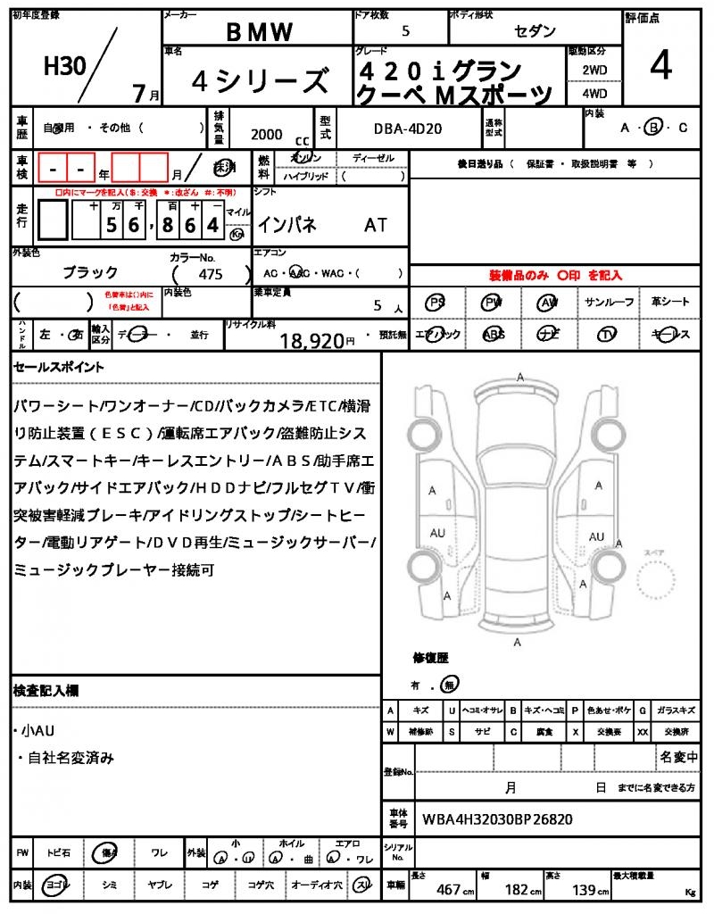 BMW | 4 SERIES | 2018 | 2000 cc | ||||||||||||||||