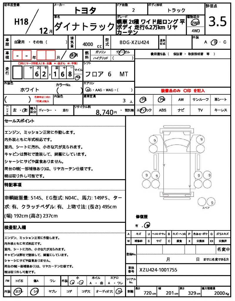 HomeShopTOYOTADYNA TRUCKRef:AUX-17068507 TOYOTA DYNA TRUCK 2006