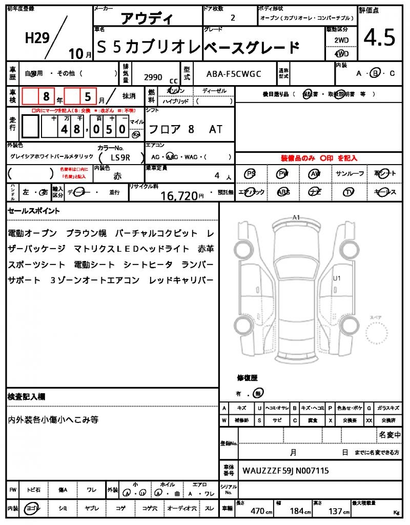 AUDI | S5 CABRIOLET | 2017 | 2990 cc | ||||||||||||||||