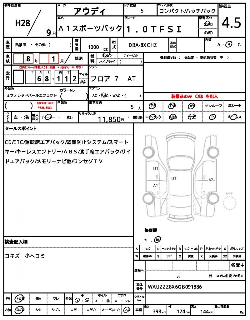 AUDI | A1 SPORTBACK | 2016 | 1000 cc | ||||||||||||||||