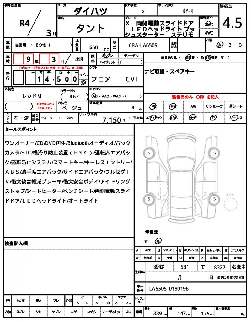 DAIHATSU | TANTO | 2022 | 660 cc | ||||||||||||||||