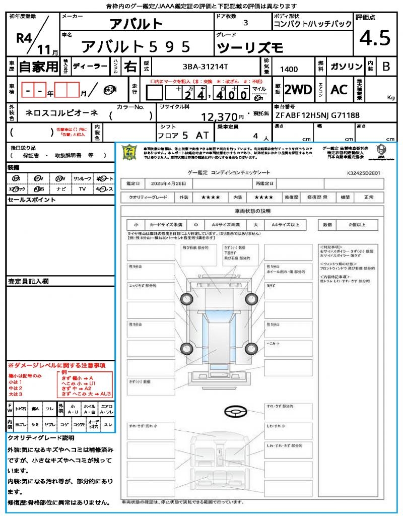 ABARTH | ABARTH 595 | 2022 | 1400 cc | ||||||||||||||||