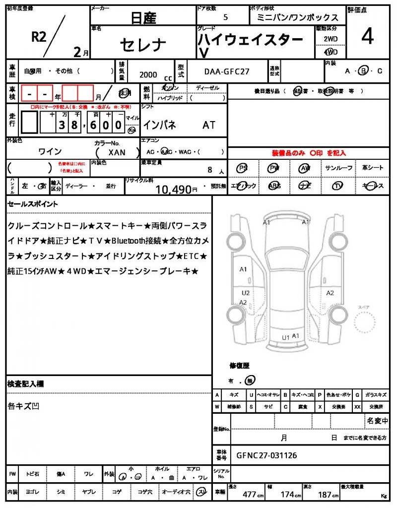 HomeShopNISSANSERENARef:AUX-17732661 NISSAN SERENA 2020