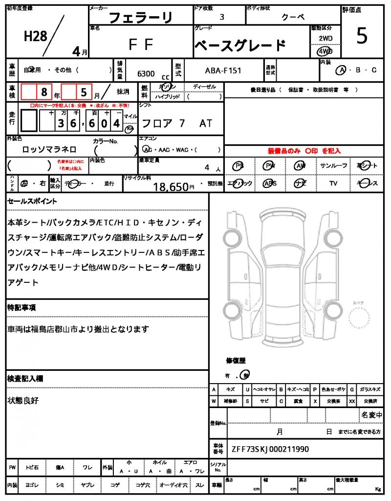 | FERRARI | FF | 2016 | 6300 cc | ||||||||||||||||