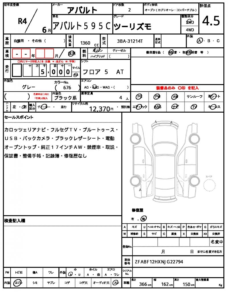 ABARTHABARTH 595C20221360 cc