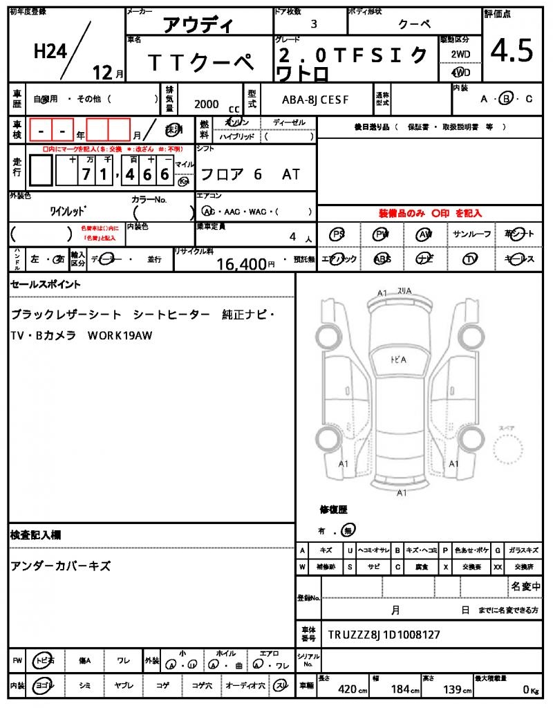 AUDI | TT COUPE | 2012 | 2000 cc | ||||||||||||||||