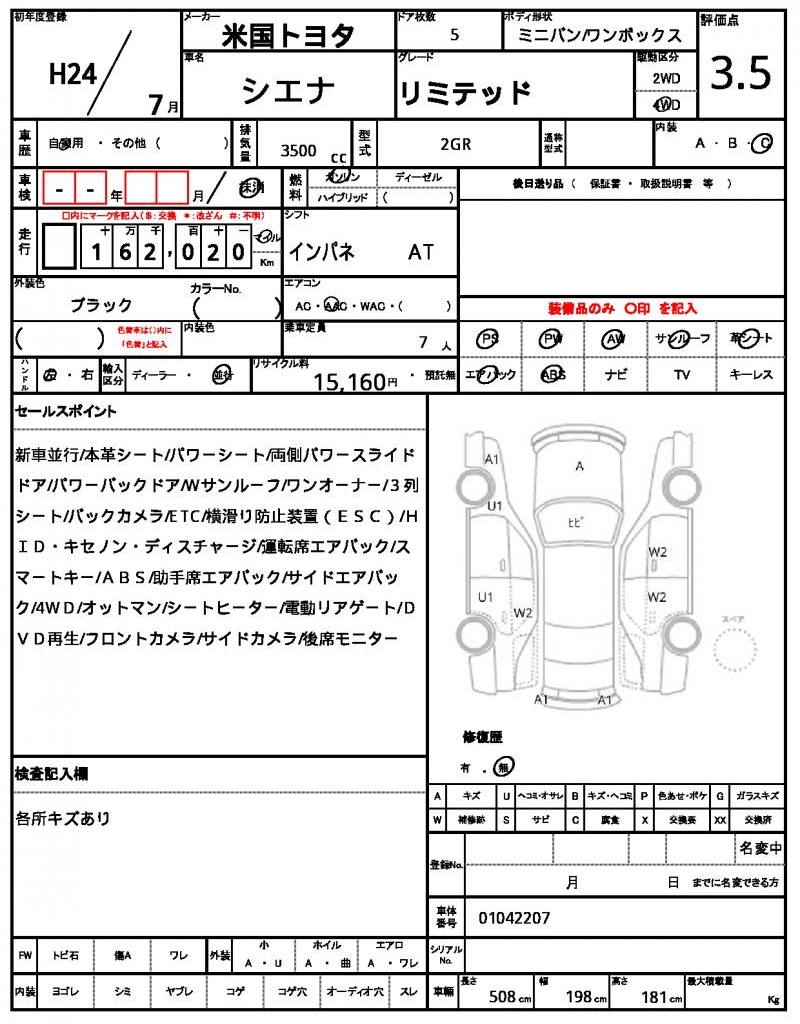 AMERICA TOYOTASIENNA20123500 cc