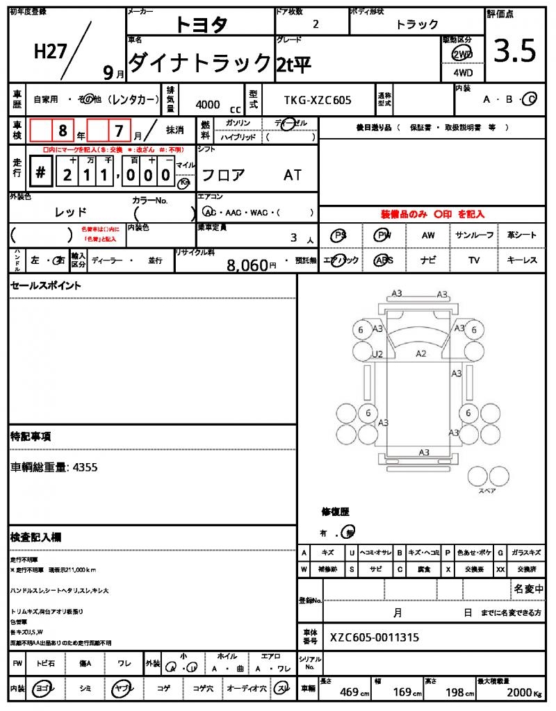 | TOYOTA | DYNA TRUCK | 2015 | 4000 cc | ||||||||||||||||