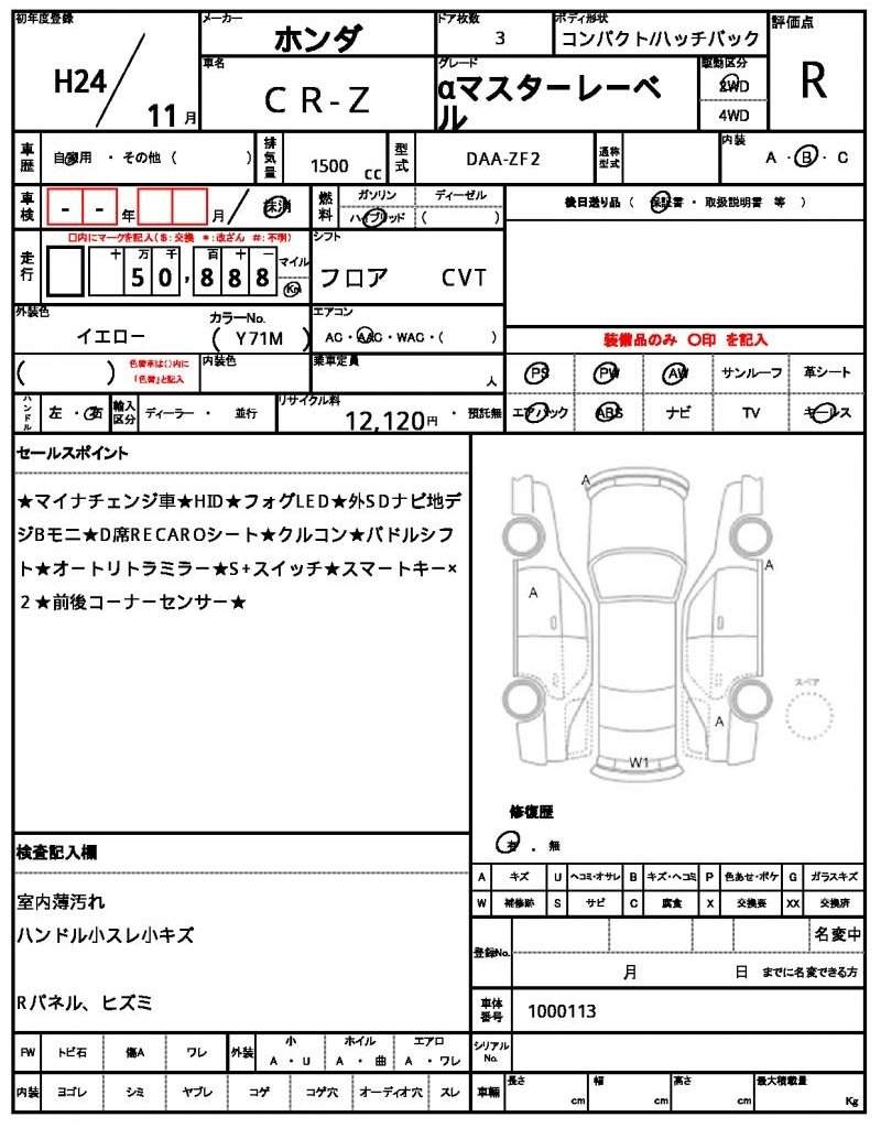 | HONDA | CR-Z | 2012 | 1500 cc | ||||||||||||||||