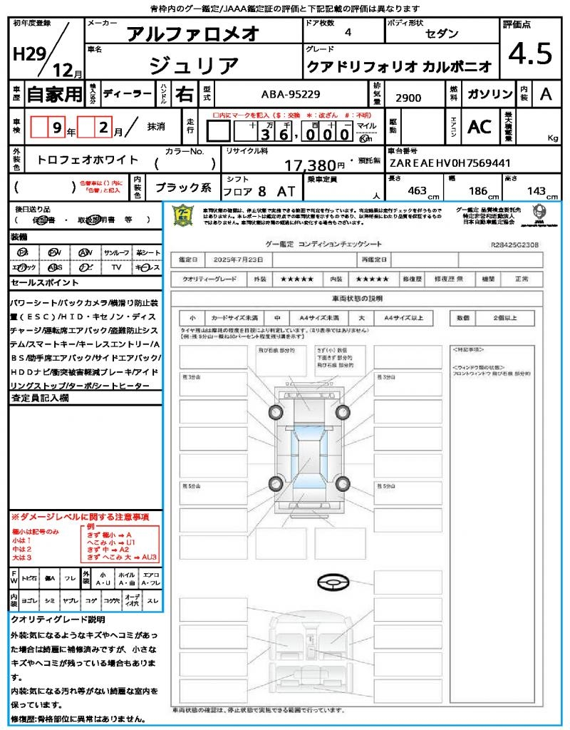 ALFA ROMEO | GIULIA | 2017 | 2900 cc | ||||||||||||||||