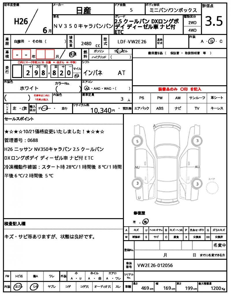 | NISSAN | NV350CARAVAN VAN | 2014 | 2480 cc | ||||||||||||||||