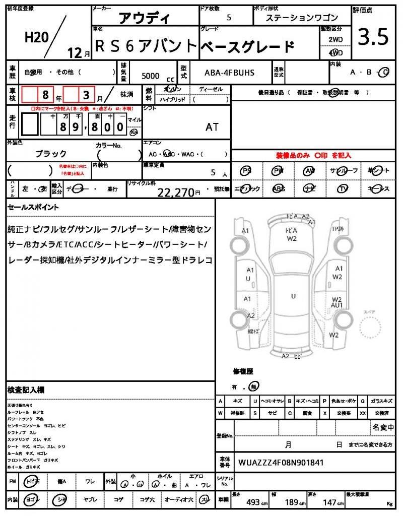 | AUDI | RS6 AVANT | 2008 | 5000 cc | ||||||||||||||||