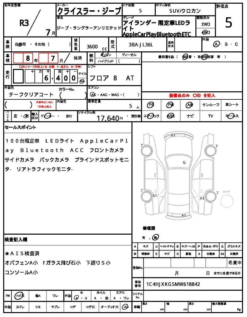 | CHRYSLER JEEP | JEEP WRANGLER UNLIMITED | 2021 | 3600 cc | ||||||||||||||||