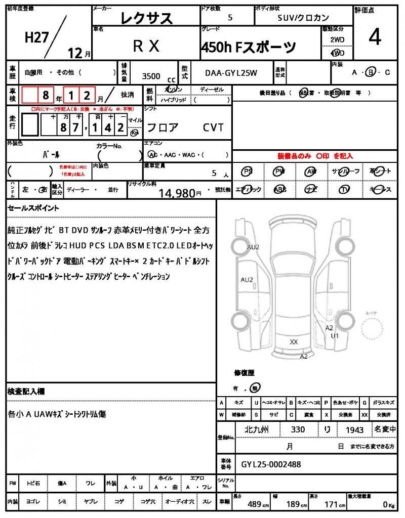 LEXUS | RX | 2015 | 3500 cc | ||||||||||||||||
