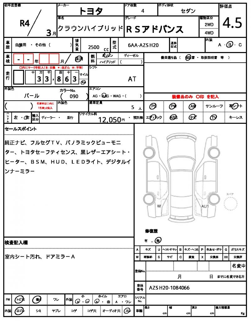 HomeShopTOYOTACROWN HYBRIDRef:AUX-19341738 TOYOTA CROWN HYBRID 2022