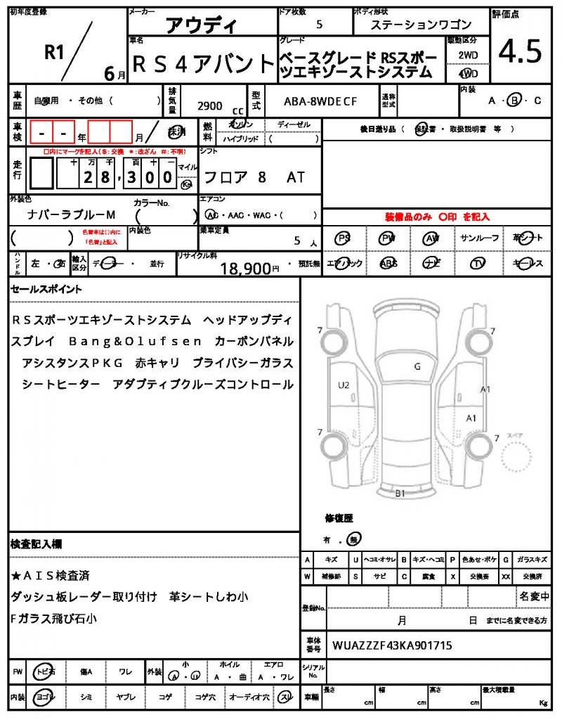 AUDI | RS4 AVANT | 2019 | 2900 cc | ||||||||||||||||