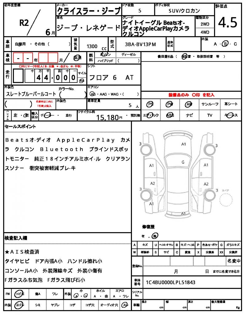 CHRYSLER JEEP | JEEP RENEGADE | 2020 | 1300 cc | ||||||||||||||||