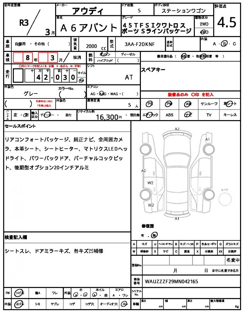 | AUDI | A6 AVANT | 2021 | 2000 cc | ||||||||||||||||