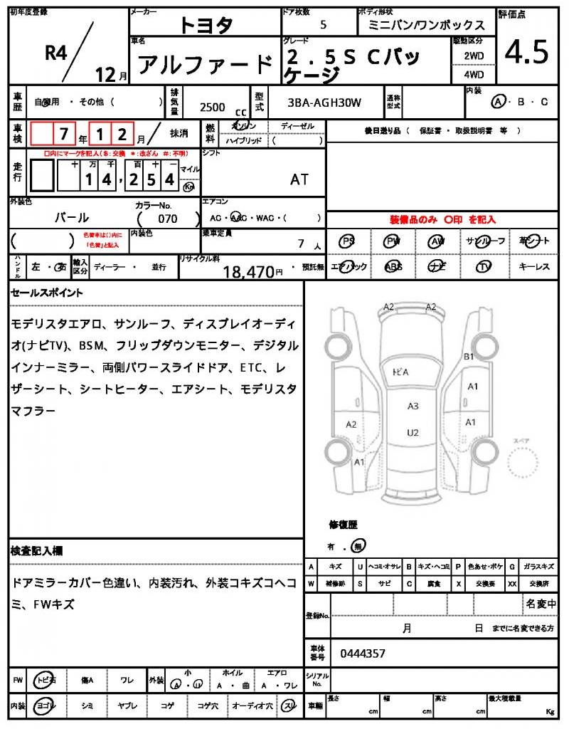 HomeShopTOYOTAALPHARDRef:AUX-19434328 TOYOTA ALPHARD 2022