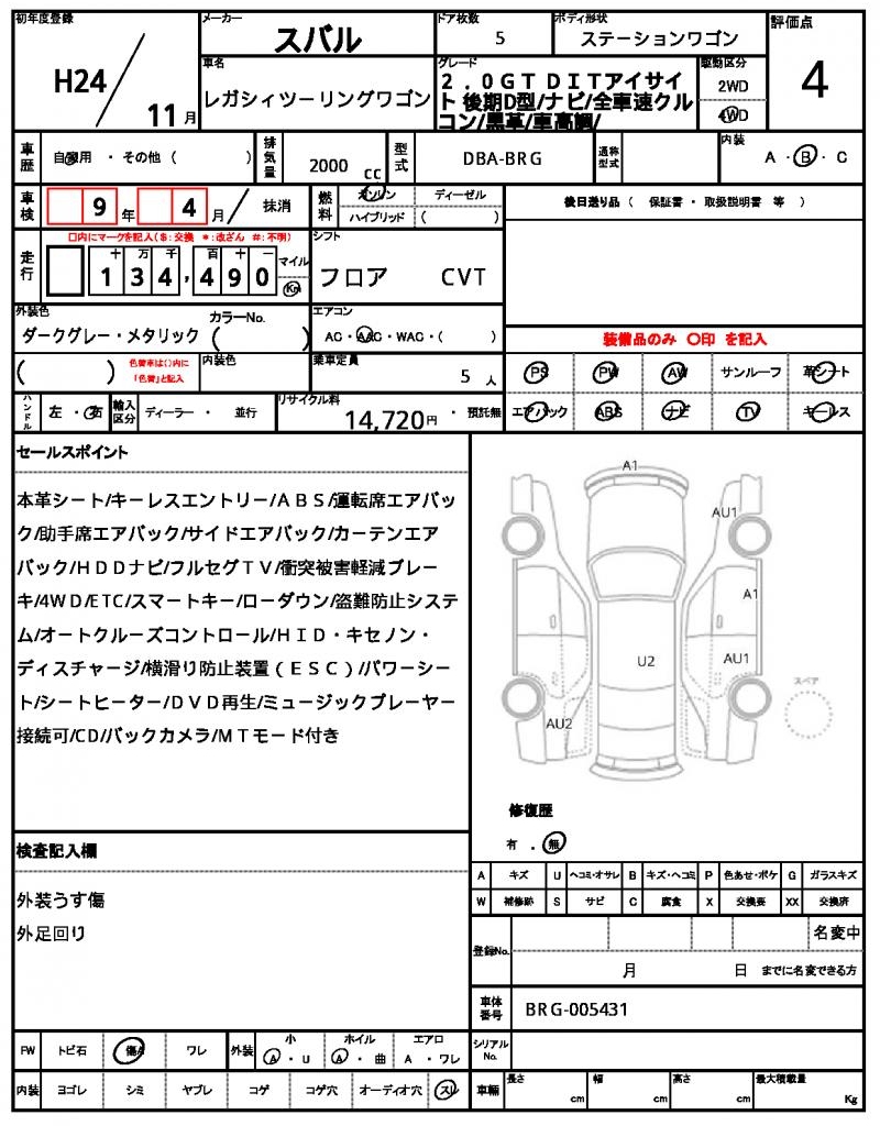 SUBARU | LEGACY TOURING WAGON | 2012 | 2000 cc | ||||||||||||||||