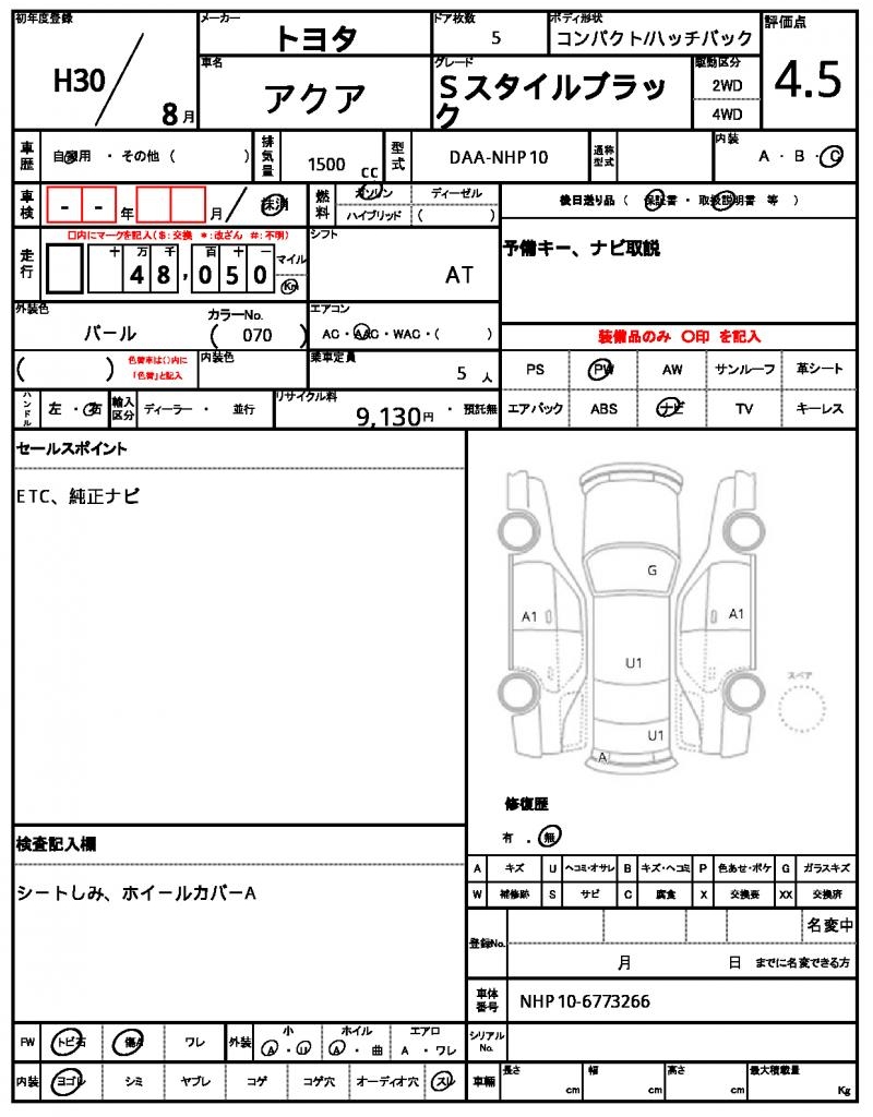 | TOYOTA | AQUA | 2018 | 1500 cc | ||||||||||||||||