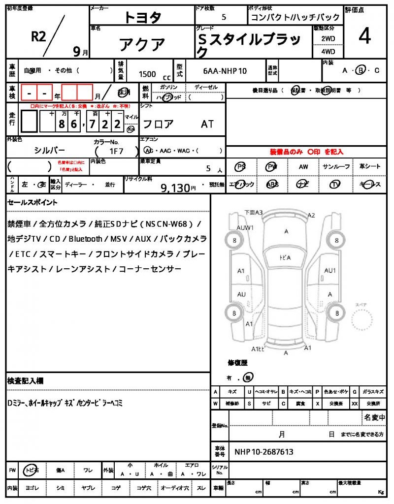 HomeShopTOYOTAAQUARef:AUX-19674335 TOYOTA AQUA 2020
