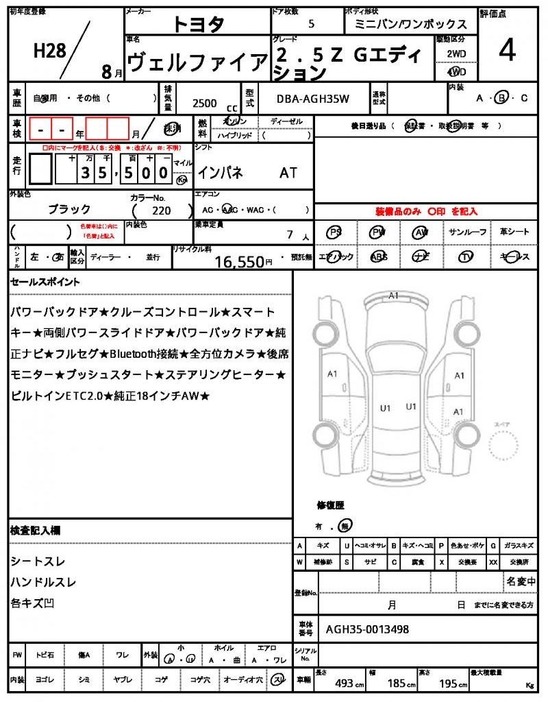 TOYOTA | VELLFIRE | 2016 | 2500 cc | ||||||||||||||||