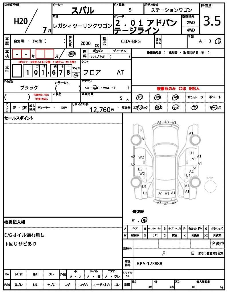 | SUBARU | LEGACY TOURING WAGON | 2008 | 2000 cc | ||||||||||||||||