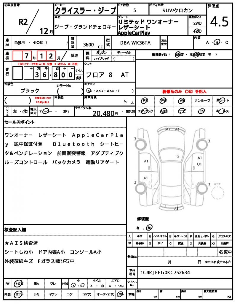 CHRYSLER JEEP | JEEP GRAND CHEROKEE | 2020 | 3600 cc | ||||||||||||||||