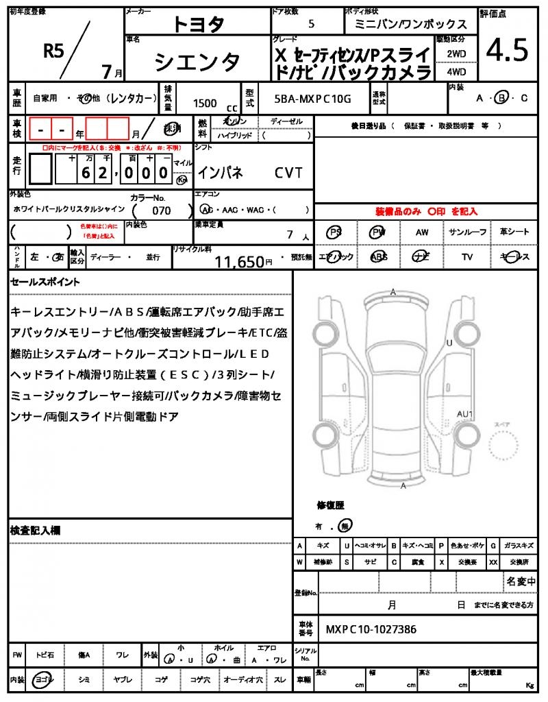 | TOYOTA | SIENTA | 2023 | 1500 cc | ||||||||||||||||