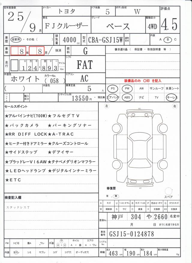 | TOYOTA | FJ CRUISER | 2013 | 4000 cc | ||||||||||||||||