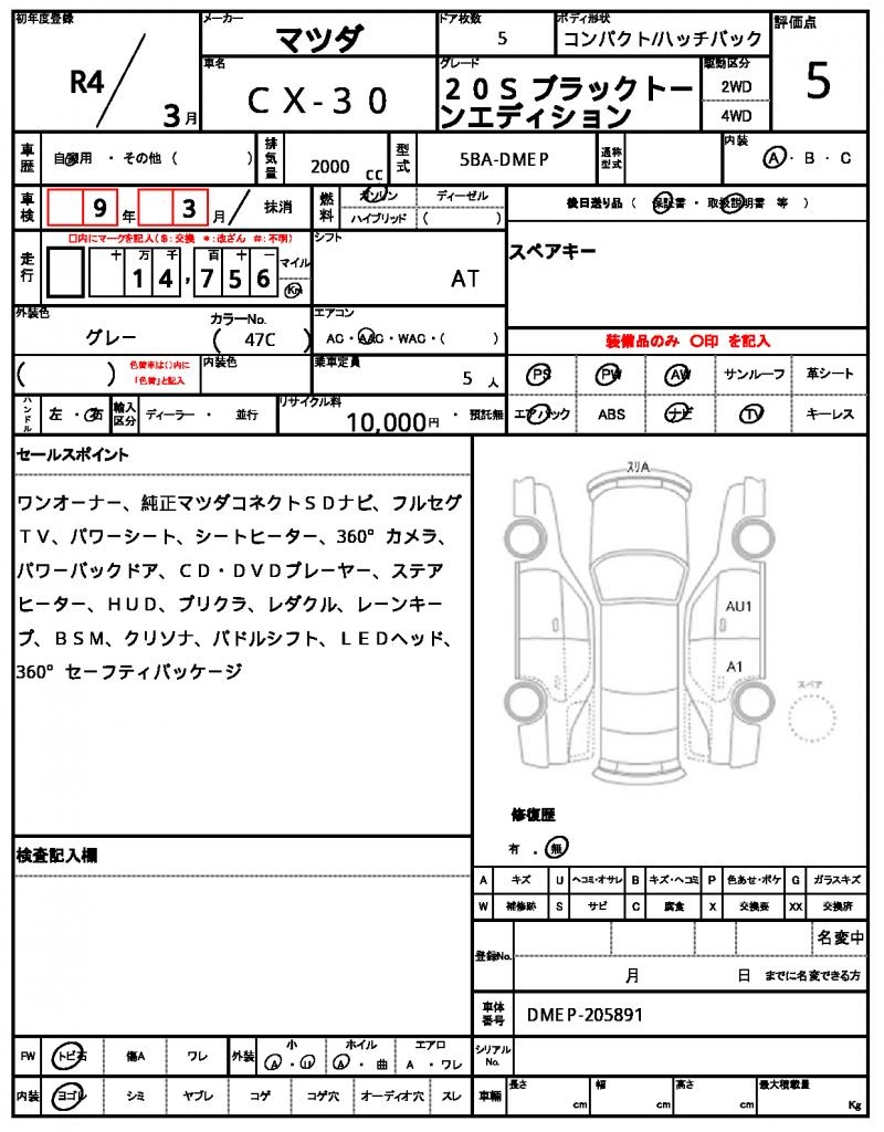 | MAZDA | CX-30 | 2022 | 2000 cc | ||||||||||||||||