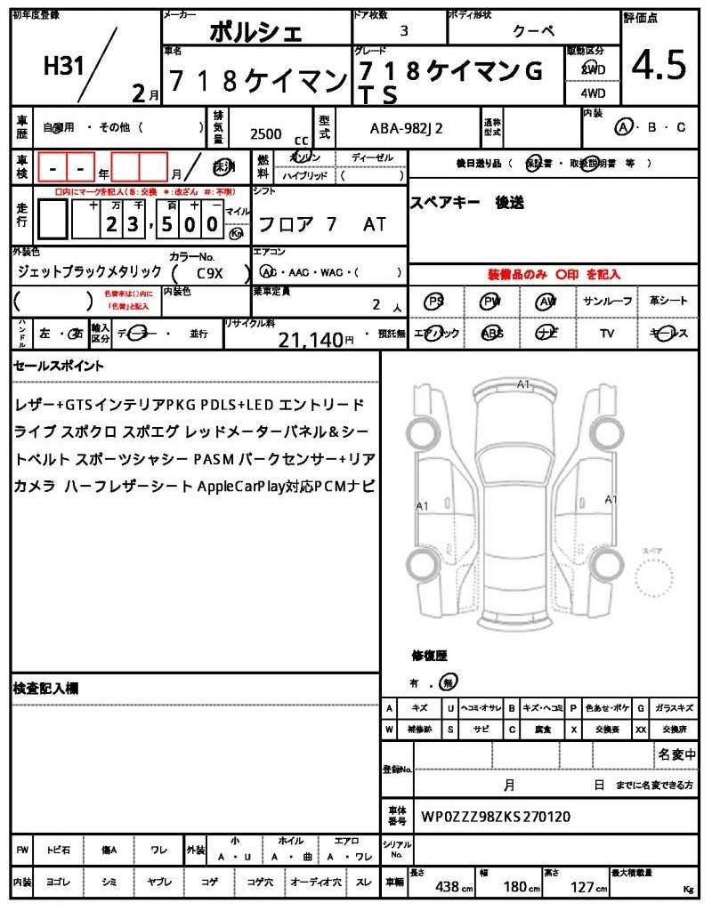 | PORSCHE | 718 CAYMAN | 2019 | 2500 cc | ||||||||||||||||