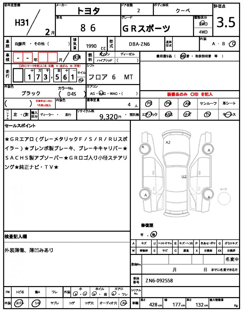 | TOYOTA | 86 | 2019 | 1990 cc | ||||||||||||||||