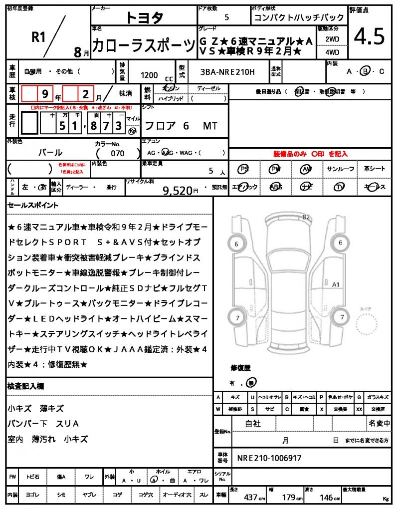 | Grade | G Z★6-speed manual★AVS★Vehicle inspection valid until February 2017★ |