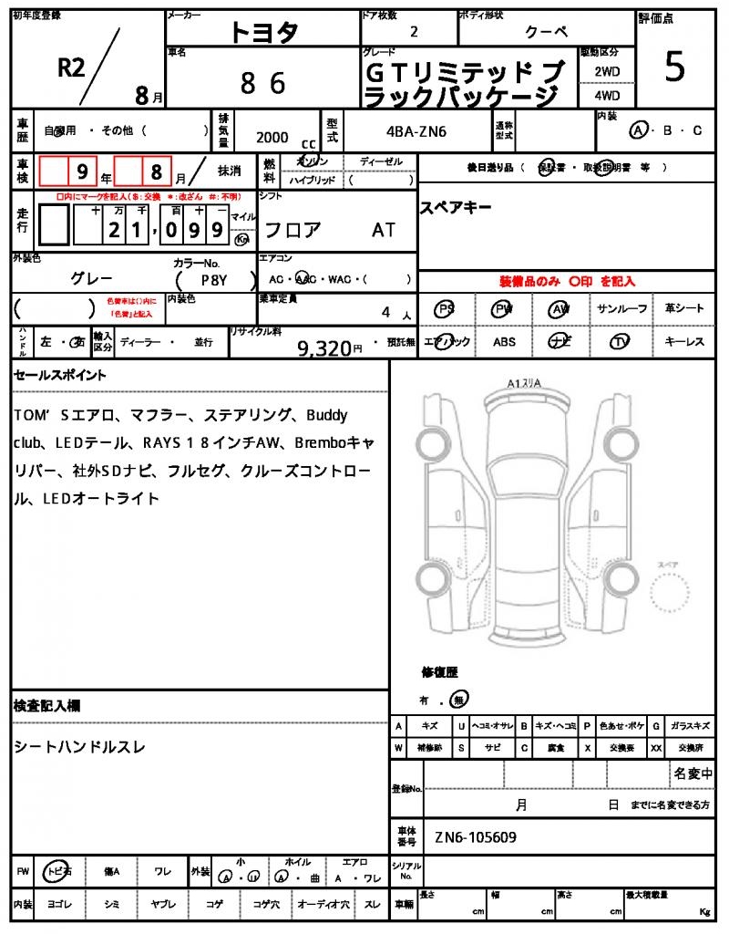 HomeShopTOYOTA86Ref:AUX-20012433 TOYOTA 86 2020