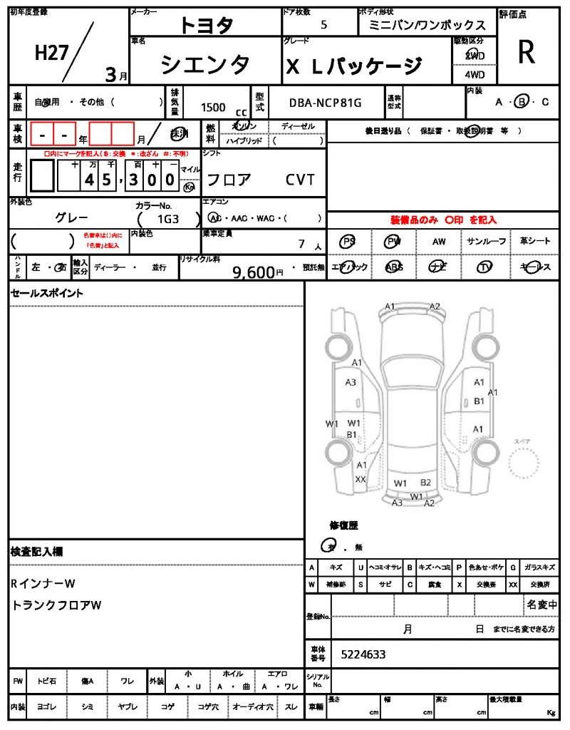 | TOYOTA | SIENTA | 2015 | 1500 cc | ||||||||||||||||
