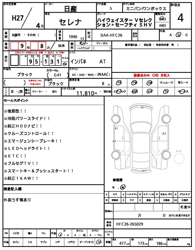 | NISSAN | SERENA | 2015 | 1990 cc | ||||||||||||||||