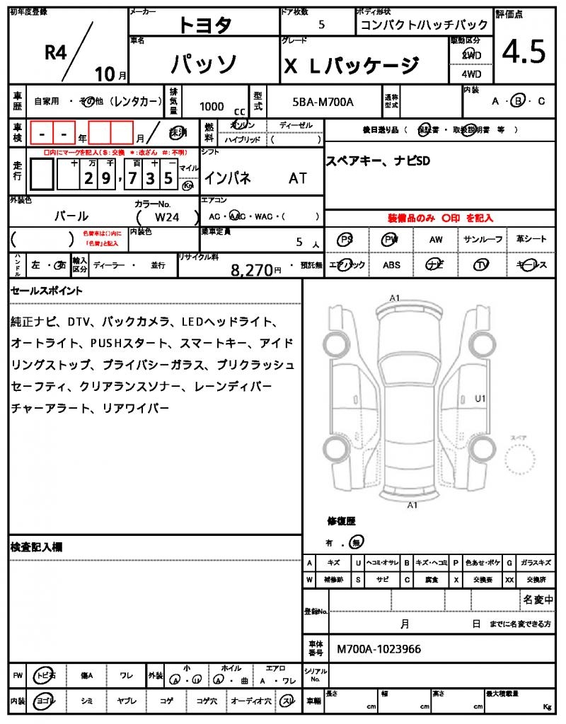 HomeShopTOYOTAPASSORef:AUX-20125082 TOYOTA PASSO 2022