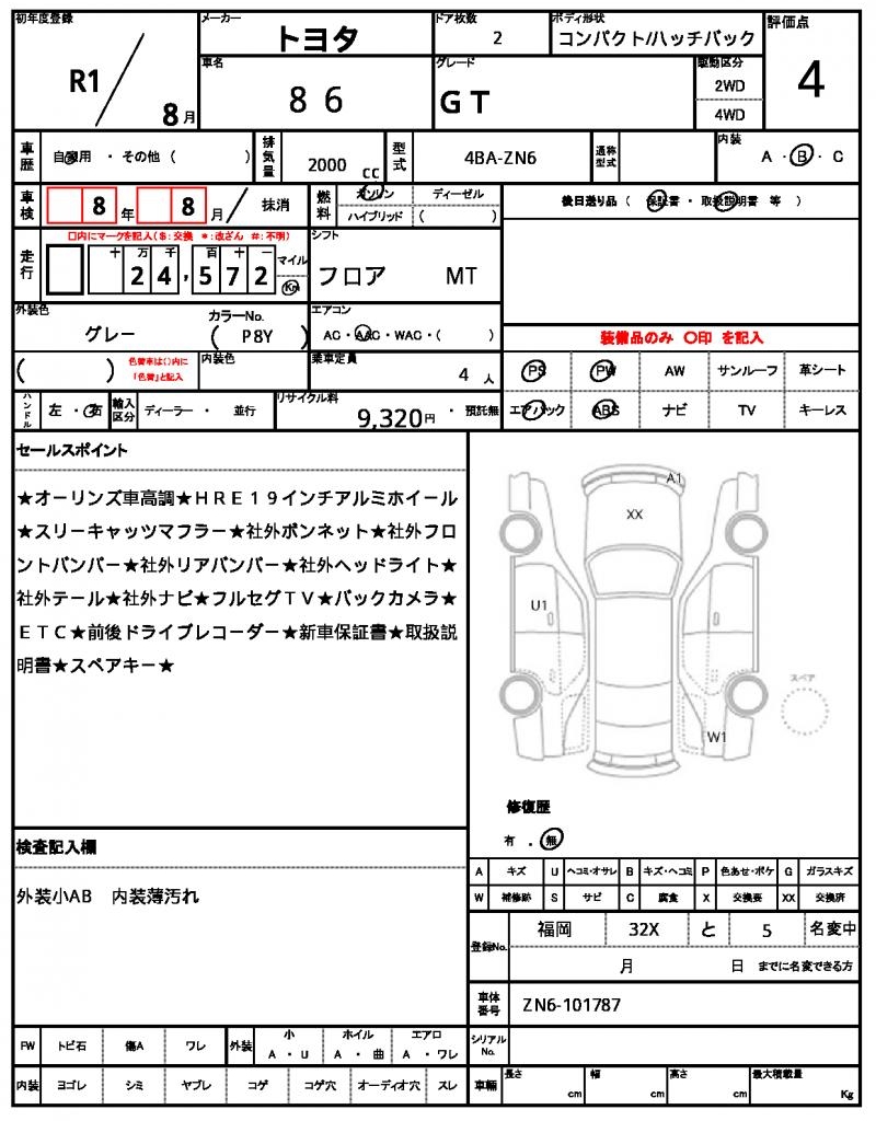 | TOYOTA | 86 | 2019 | 2000 cc | ||||||||||||||||